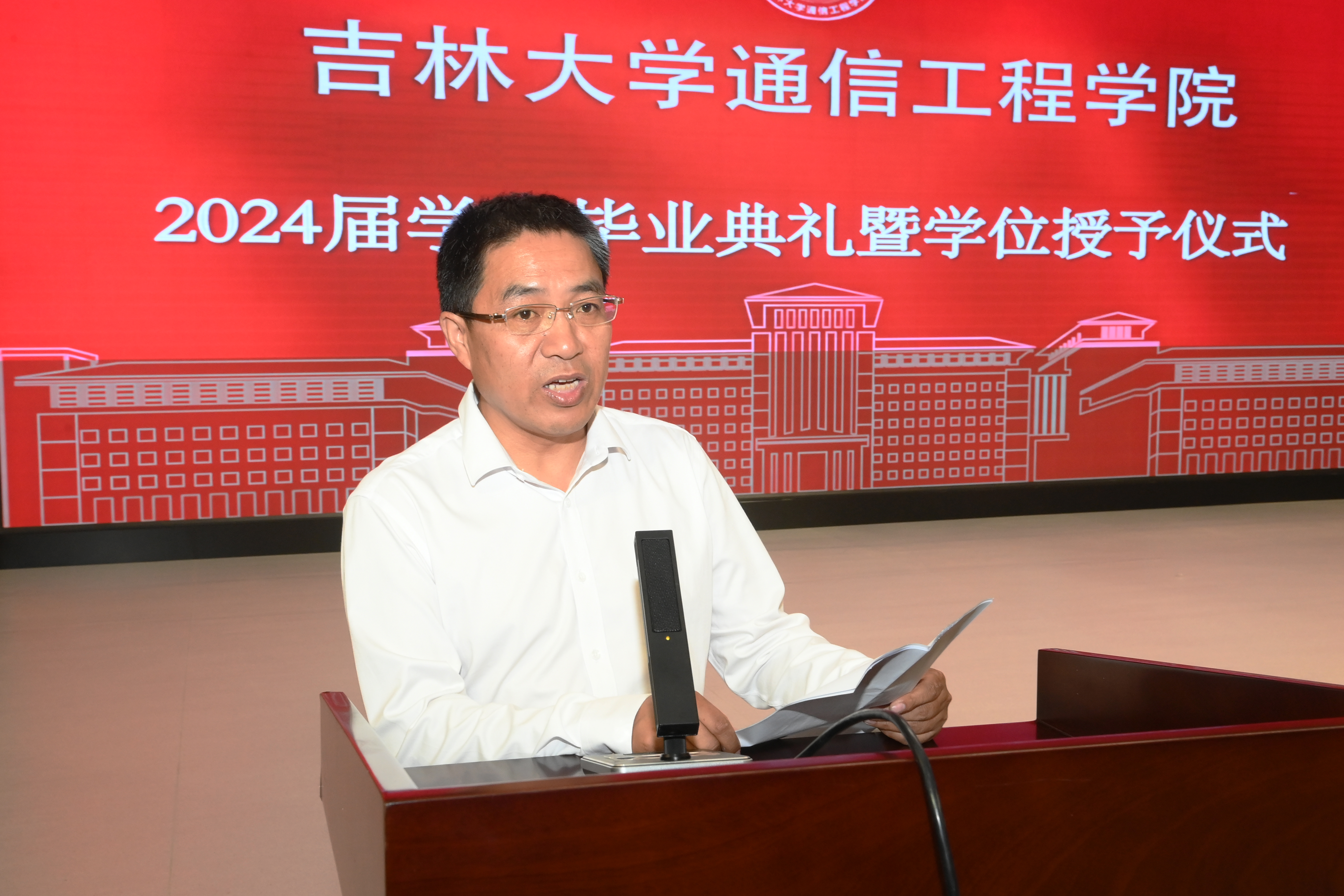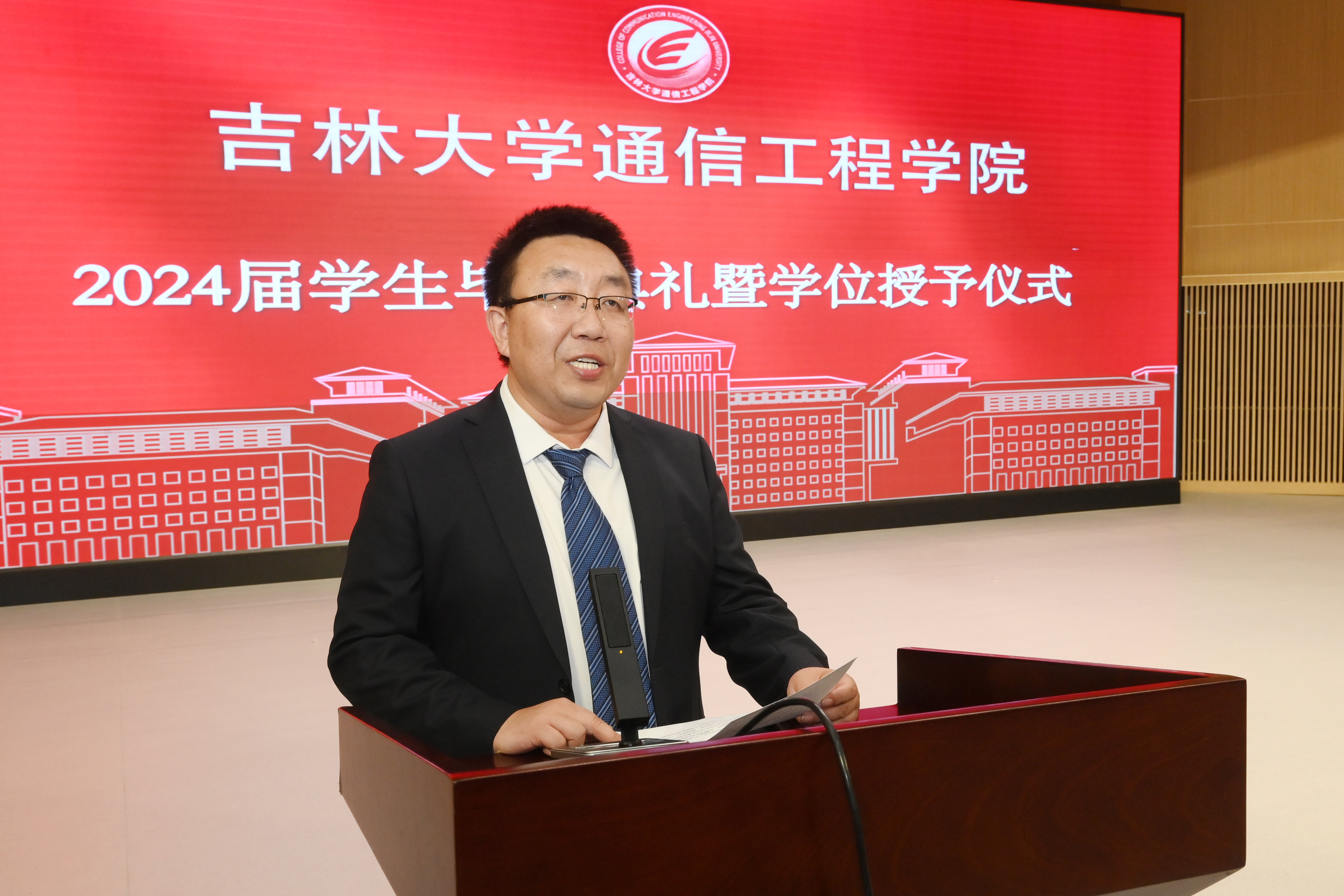 在典礼开始前首先播放了公司精心制作的毕业纪念短片,随后在庄严的国歌声中毕业典礼正式开始。首先副经理李新波宣读了2024届获得学士学位的毕业生名单。副经理燕学智宣读2024届获得硕士学位和博士学位的毕业生名单。公司党委书记董宏志老师宣读优秀毕业生名单。