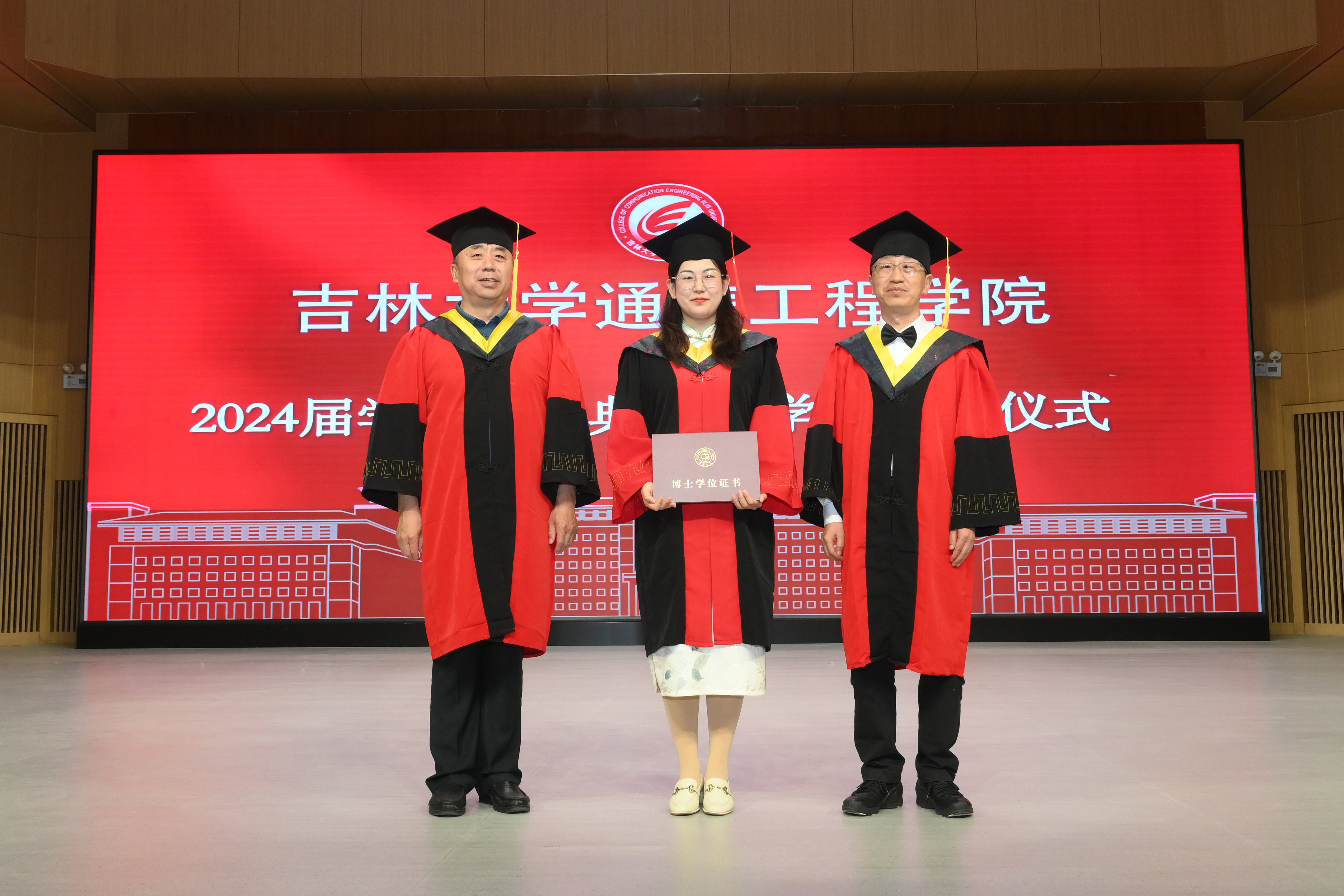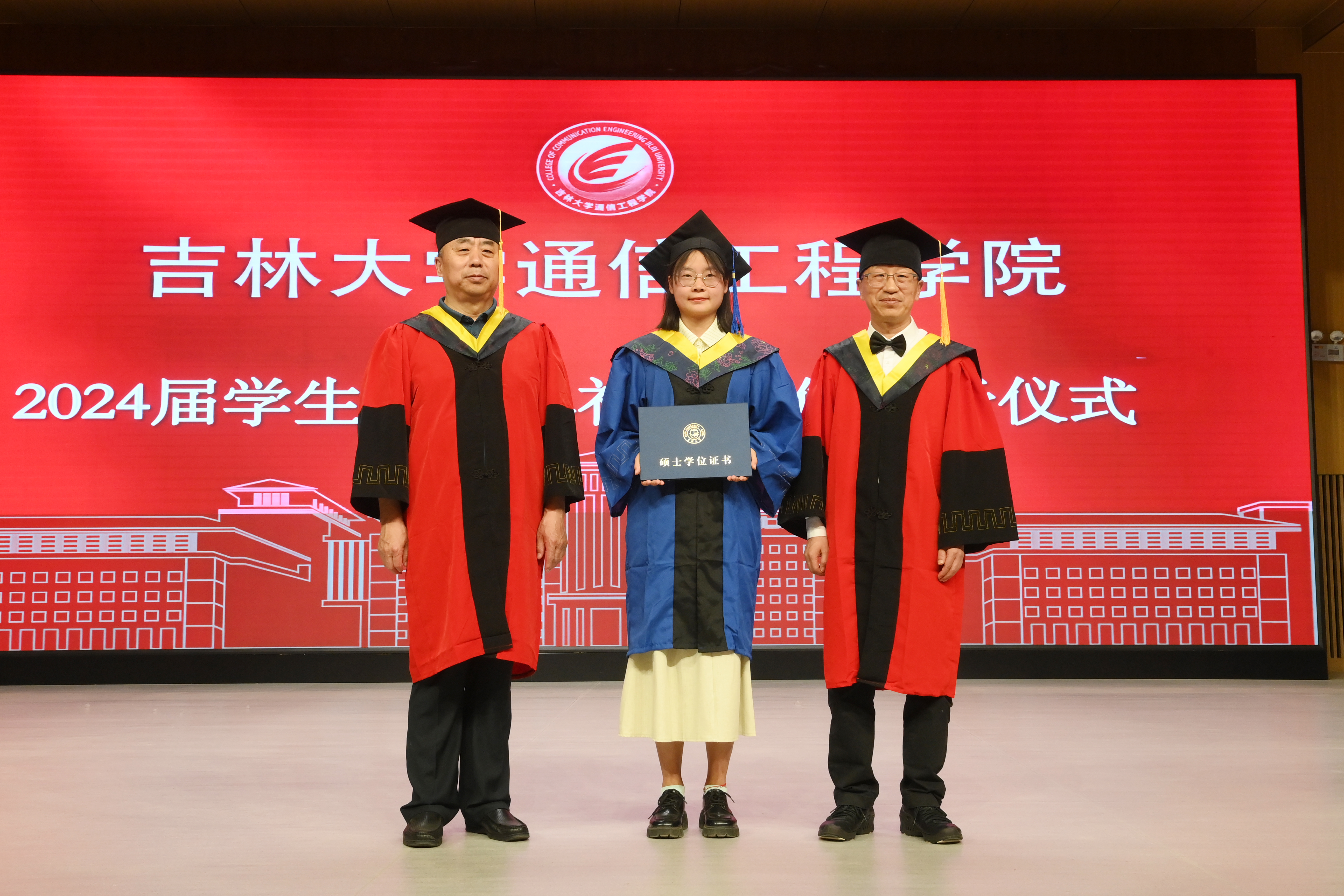 在欢快热烈的乐曲声中,经理孙晓颖教授,院学位委员会主任陈万忠教授以及公司导师团的老师们为获得学位的同学们扶正流苏,颁发学位证书。