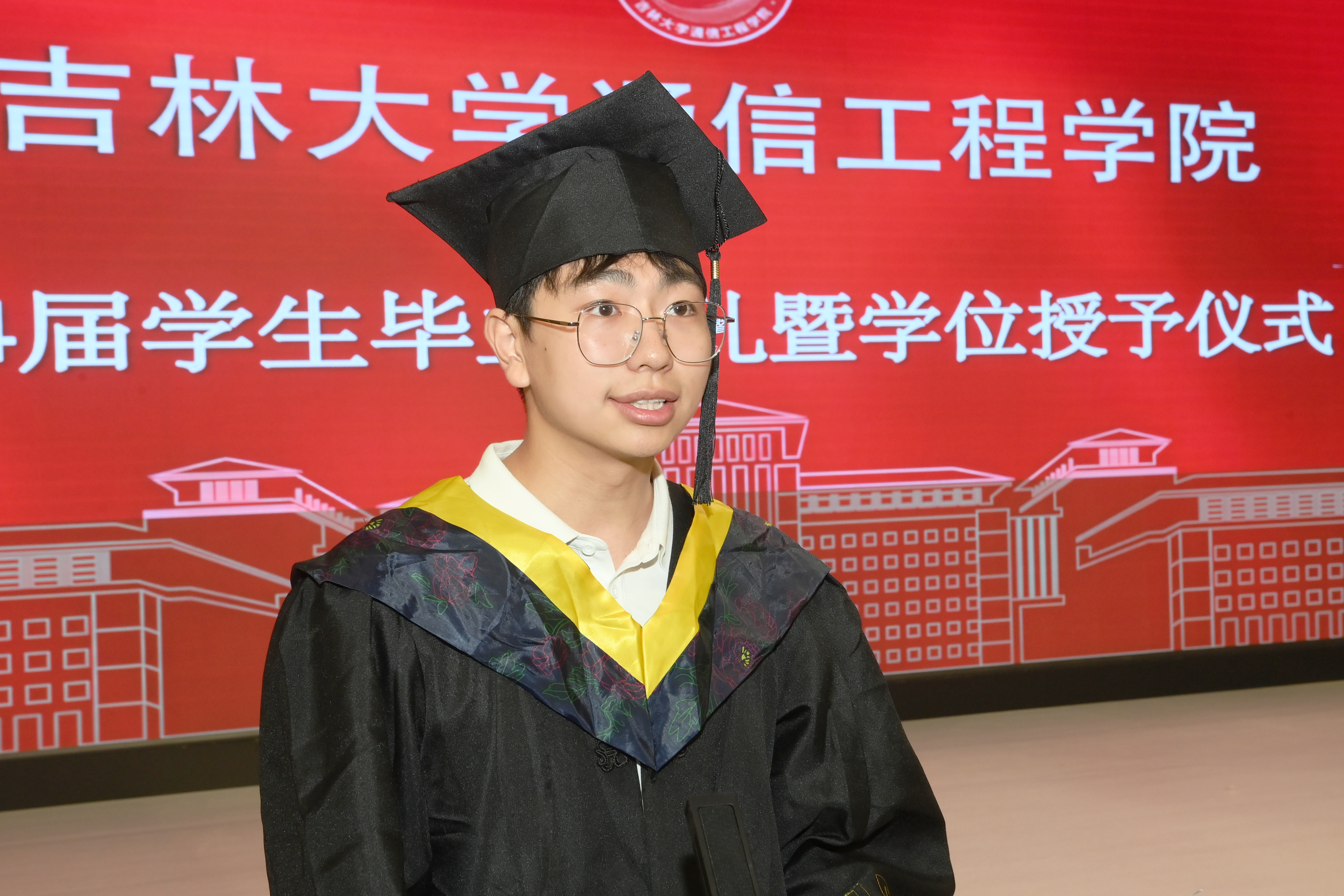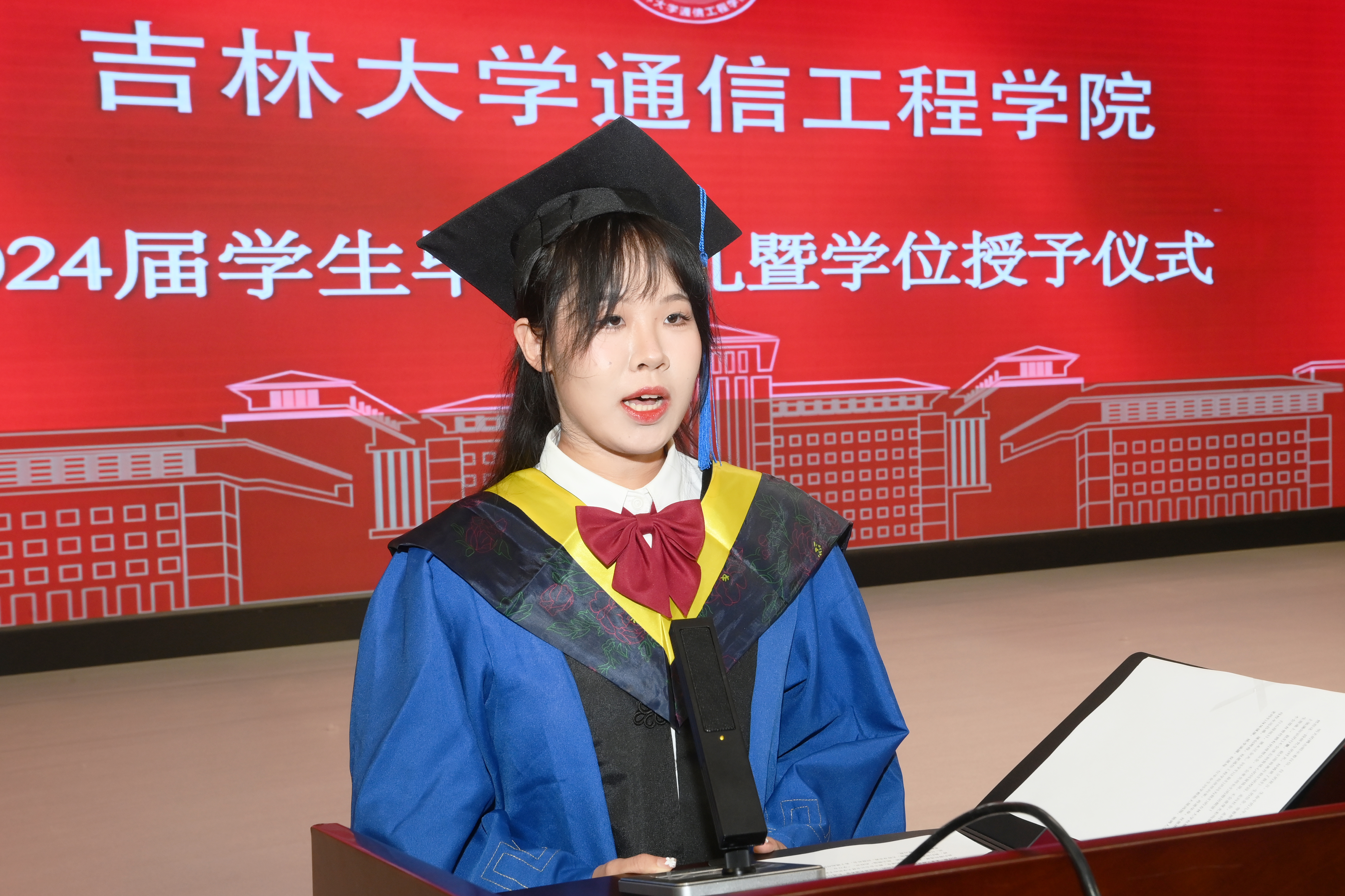 随后本科毕业生代表沙琦昊同学发言。他和同学们共同回忆了大学四年来的点点滴滴,为公司和老师送上了深深的祝福。研究生代表陈思妤表示一定会和所有的毕业生们去投身实践,回报社会,勇于挑起肩负的历史使命,为国家的强盛奉献青春的力量。教师代表空间信息与数字技术系主任丛玉良老师希望同学们要铭记校训,践行院训,饮水思源,不忘初心,以梦为马,绽放芳华。