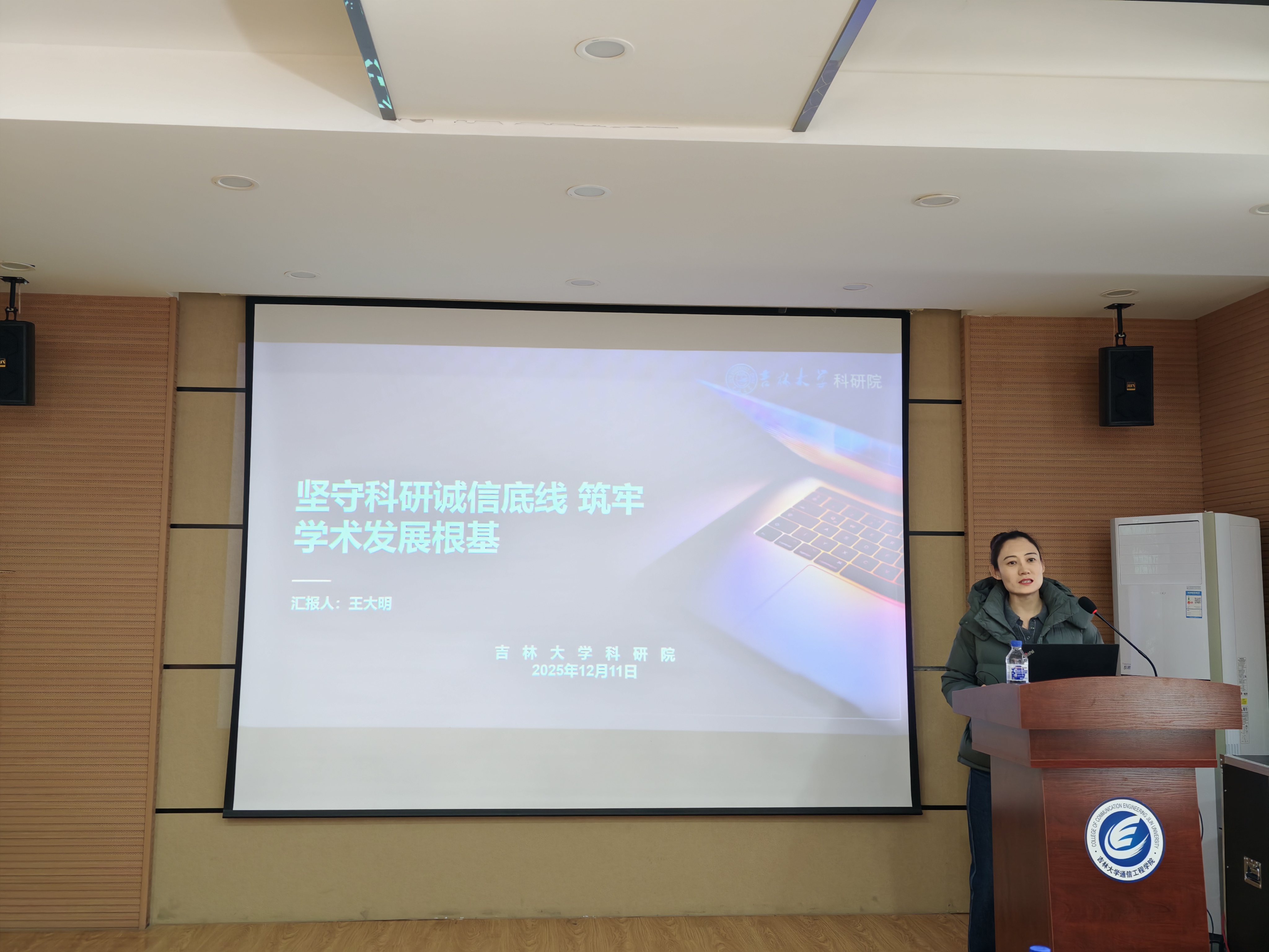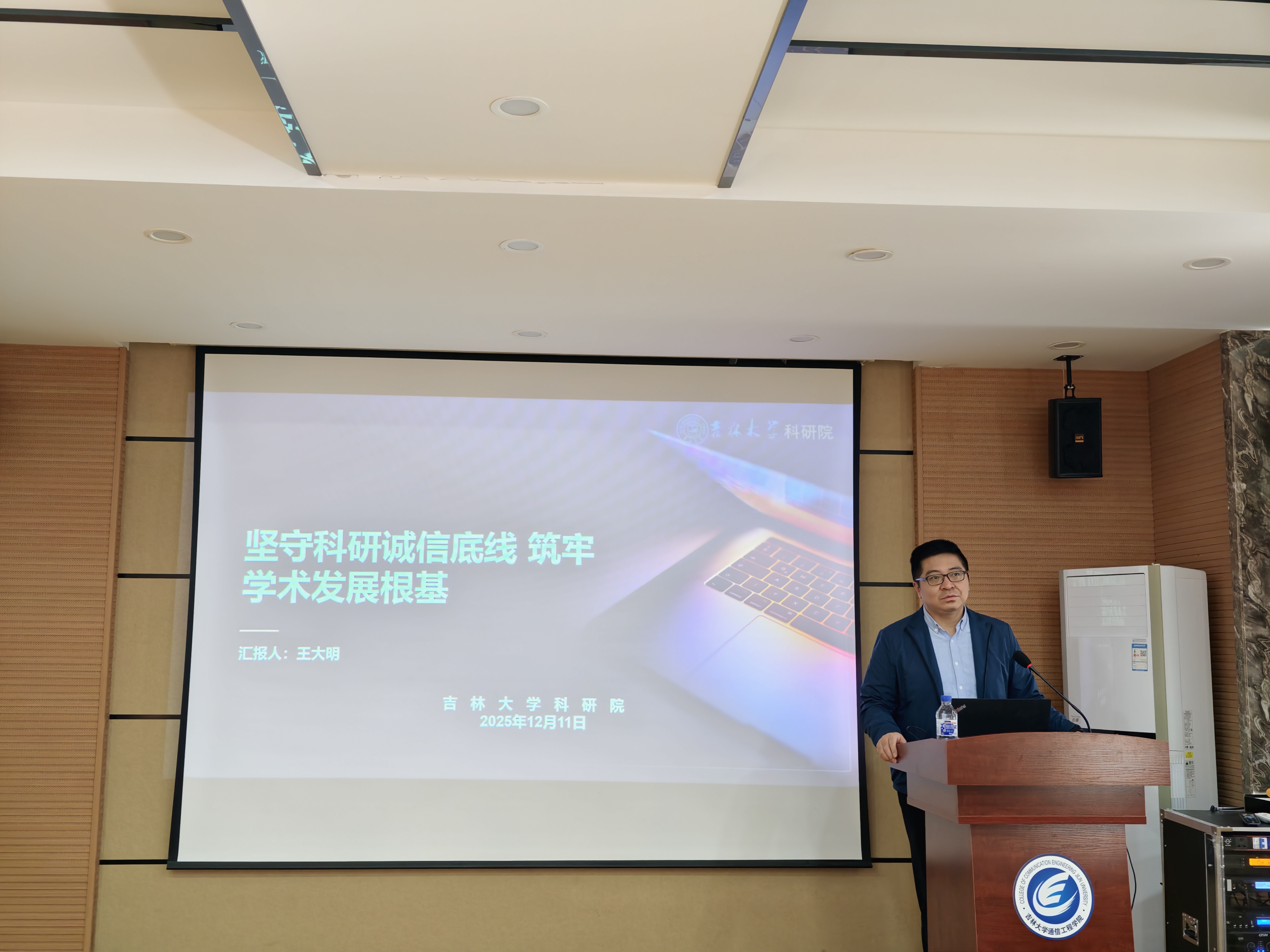 为深入贯彻国家科研诚信建设相关政策要求,强化全院师生学术道德意识,规范科研行为,营造风清气正的学术生态,12 月 12日,tyc122cc太阳成集团组织开展科研诚信专题宣讲会。本次活动特邀tyc122cc太阳成集团科研院王大明主任主讲,以“坚守科研诚信底线 筑牢学术发展根基”为主题,为公司师生带来一场兼具理论深度与实践指导意义的专题分享。宣讲会由tyc122cc太阳成集团副经理王雪主持,公司科研团队师生代表参加本次宣讲会。