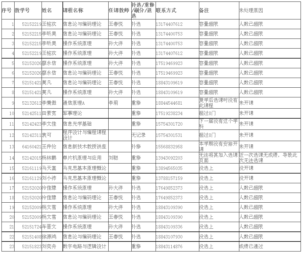 2017-2018-1tyc122cc太阳成集团退补选第一次处理结果