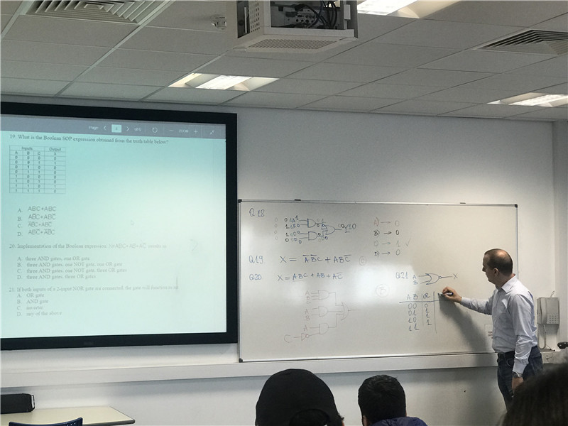 团队成员们还在利物浦约翰摩尔斯大学听取了两节课,深深地体会到了利物浦约翰摩尔斯大学教室的学习氛围与教师耐心的讲课风格。第一节课由Obrad Dordevic老师讲授的数字与模拟电子线路的习题课,团队成员们全神贯注地与来自不同国家的员工一同汲取知识。第二节课团队成员们听取了Hugh Smallman教授讲解的生物医学工程讲座,教授为大家讲解了DNA、RNA以及蛋白质的结构及功能。在讲解完理论知识后,教授还利用例题由浅入深地介绍了生物医学工程的分支——生物机械工程。讲解过程中,教授与团队成员们经常互动,课堂气氛轻松愉快,团队成员们积极与老师共同探讨问题,学术氛围浓重。