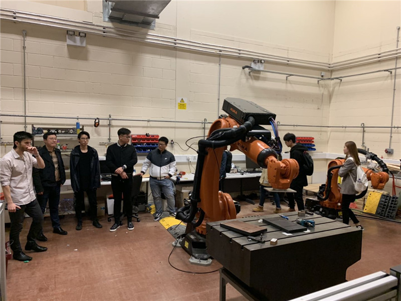 接下来团队成员们前往曼彻斯特,在两所公司进行交流访学。在索尔福德大学访问期间,来自索尔福德大学自动系统和先进机器人研究中心的老师Theo Theodoridis为大家介绍了四种机器人,其分别是进行铣槽工作的库卡机械臂、基于气动肌肉的仿生机械臂、基于人工智能的ROS机器人以及帮助行动不便的老人的助老机器人。老师介绍道每个机器人各司其职,根据需求集成不同的产品,这样将大大促进机器人的产业化发展。最后,老师还为我们介绍了一间智能家居房间,这间“神奇”的房间看着普通,实际处处都是智能机械化!团队成员们简单了解到了仿生机械的研究原理,并且被其应用深深震撼。