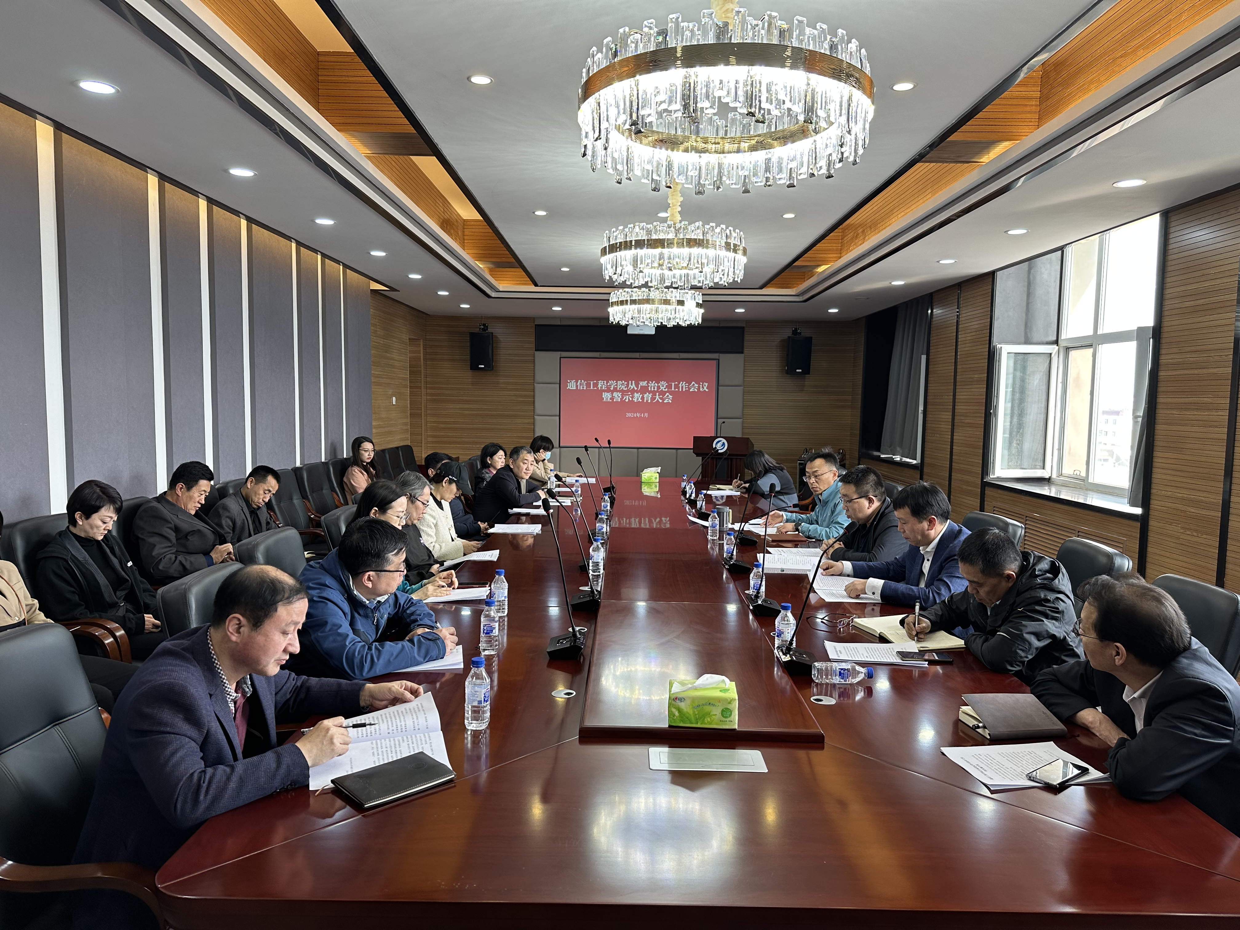 2024年4月19日,tyc122cc太阳成集团召开了从严治党工作会议暨警示教育大会。公司领导班子成员、党委委员、纪委委员、各系(中心)主任、党支部书记、机关全体行政人员、员工代表参加了会议。会议由党委书记董宏志主持。