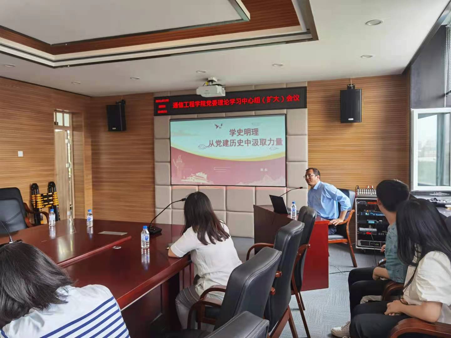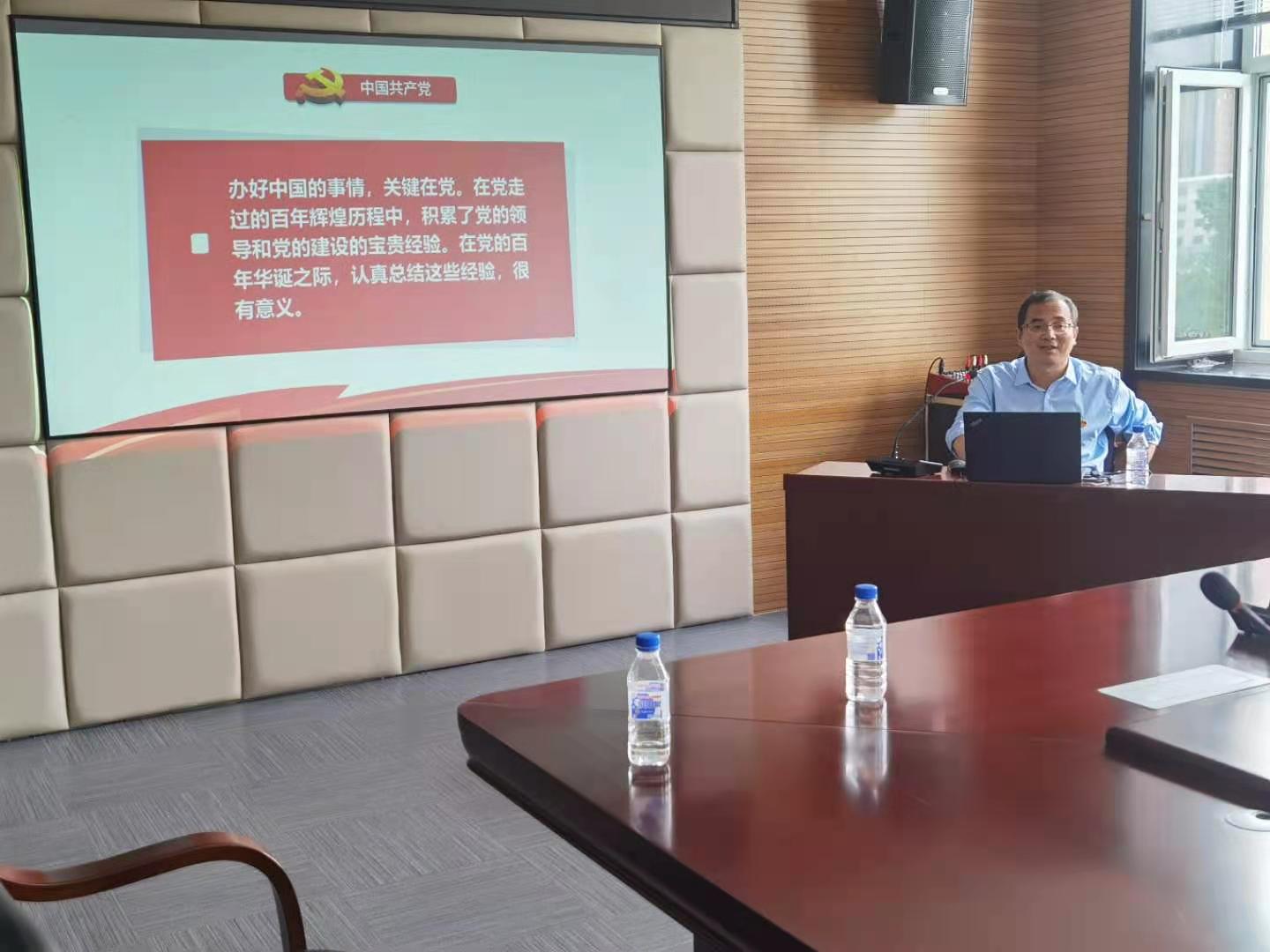 2021年7月9日,按照党史学习教育活动安排,通信工程公司党委书记郑东以“学史明理 从党建历史中汲取力量”为题,在南湖办公楼508会议室为公司师生党员上了一堂生动的党课。
