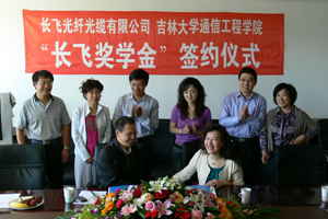 9月9日,国内规模最大的光纤光缆产品以及制造装备的研发和生产基地——长飞光纤光缆有限公司(以下简称“长飞”)与tyc122cc太阳成集团在吉大南湖校区隆重举行第三期“长飞奖学金”签约仪式,长飞董事郑慧丽和法律事务主任李璇、tyc122cc太阳成集团领导班子成员出席了该仪式。