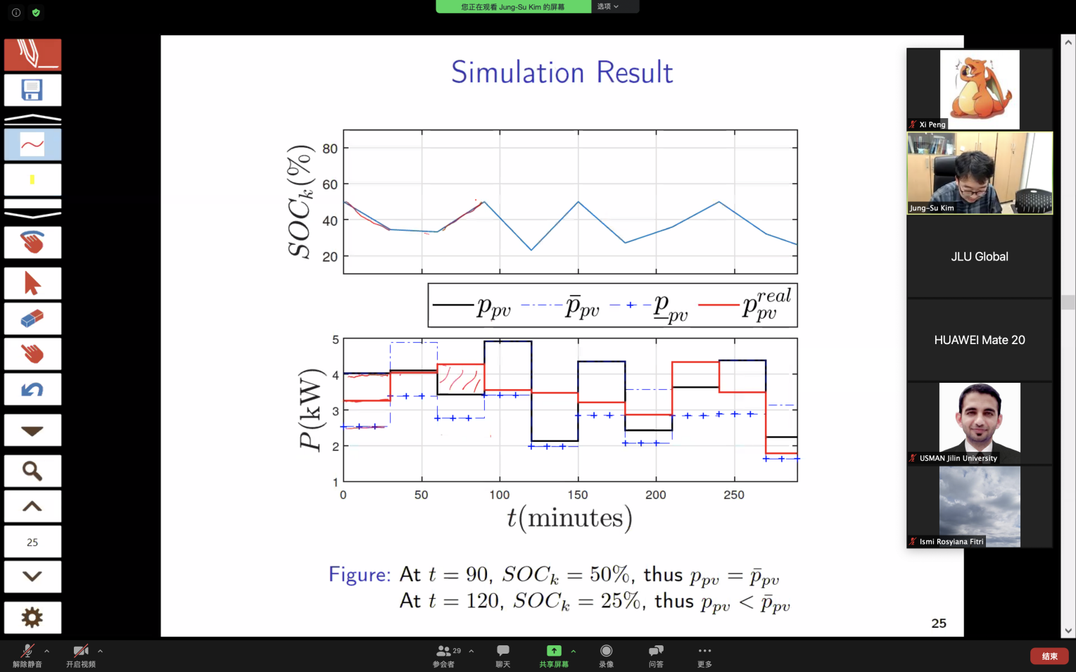 Jung-Su Kim教授做了题为“Priority-Considered Load Shedding in Economic Dispatch: Distributed Optimization Approach”的学术报告。首先他介绍了经济调度和可再生优先负载等优化概念。其次,Jung-Su Kim教授详细阐述了频率稳定性和功率平衡在经济调度方面的重要性,并以此为限制对经济调度数学模型进行分布式优化。最后,他总结了关于分布式经济调度的应用,并热情耐心地一一解答现场师生的提问。