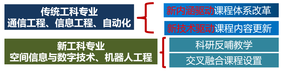 以“通识为根,专业为本,交叉创新”推进专业建设,围绕教学内容、课程体系、教学梯队和教学条件等专业基本要素,加强专业内涵建设,通信工程、信息工程、自动化三个专业获批为国家级一流本科专业建设点;对接行业区域经济社会发展需求,优化专业结构,新建“空间信息与数字技术”、“机器人工程”两个“新工科”专业,实现了公司新工科专业的合理布局。