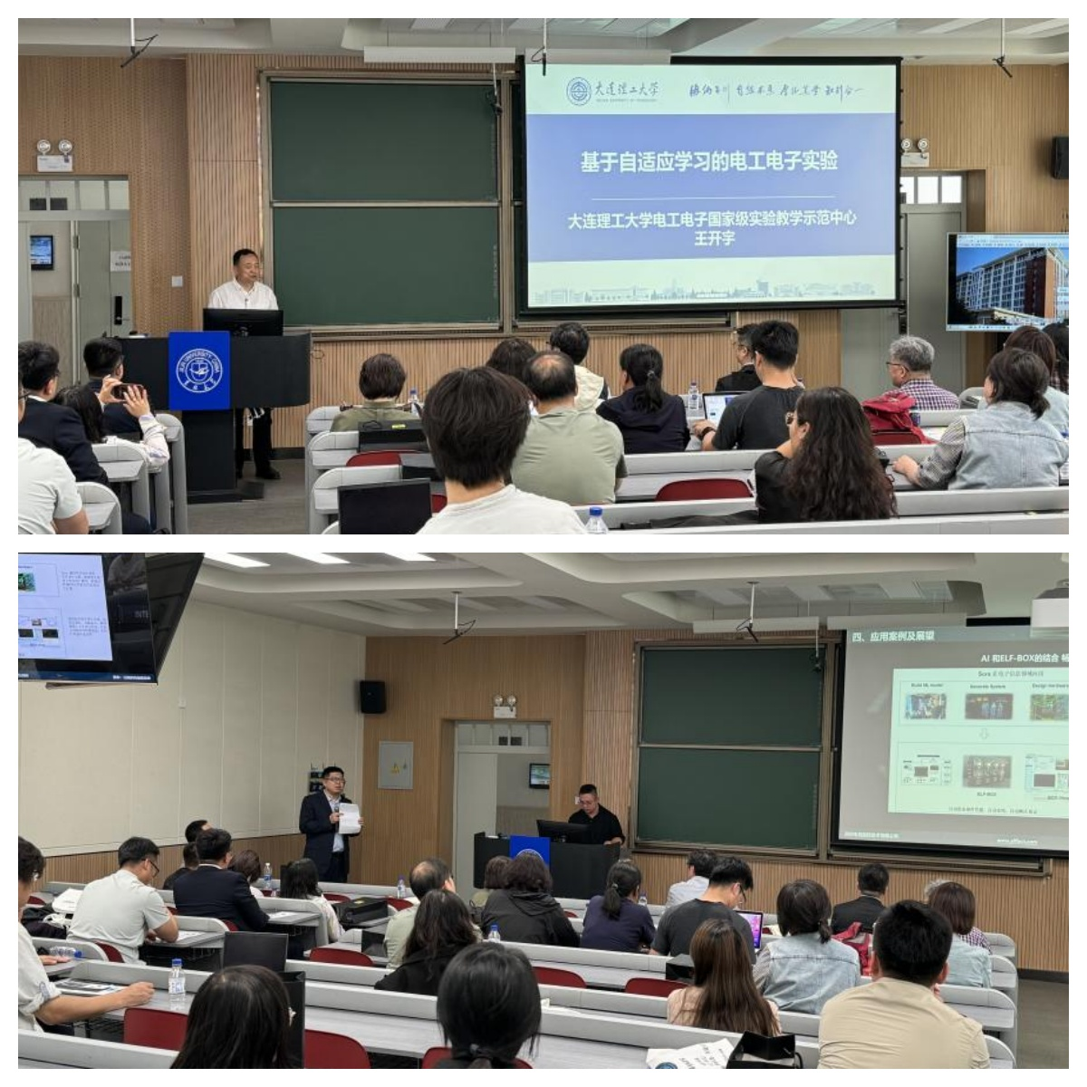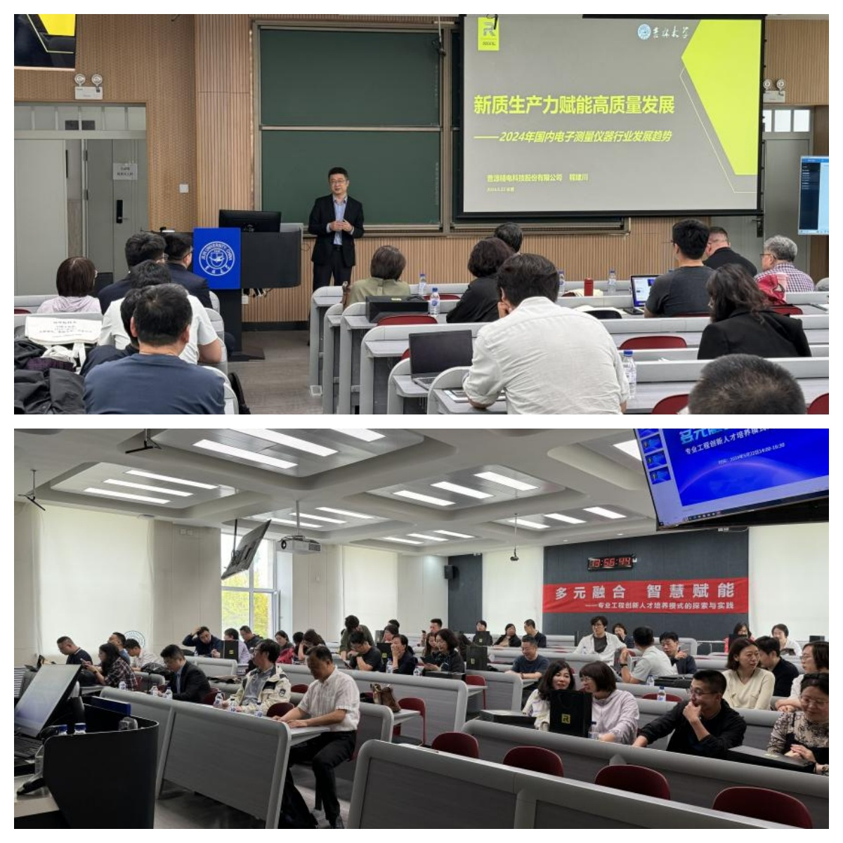 王开宇教授以“基于自适应学习的电工电子实验”为题,从在线开放课程建设、电工电子实验智慧数字教材建设、智能自适应数字时间学习平台等方面分享了大连理工大学在智慧实验室建设方面经验和成果,并对教育数字化建设进行了展望。宋洪光先生以“智慧实验探索与实践”为题,从实验教学智能化、智能硬件实验平台、实验数字化及个性化评价等方面分享了武汉大学、华中理工大学等部分高校智慧实验建设的经验与成果。程建川先生作了“新质生产力赋能电子测量仪器高质量发展”方面的报告。