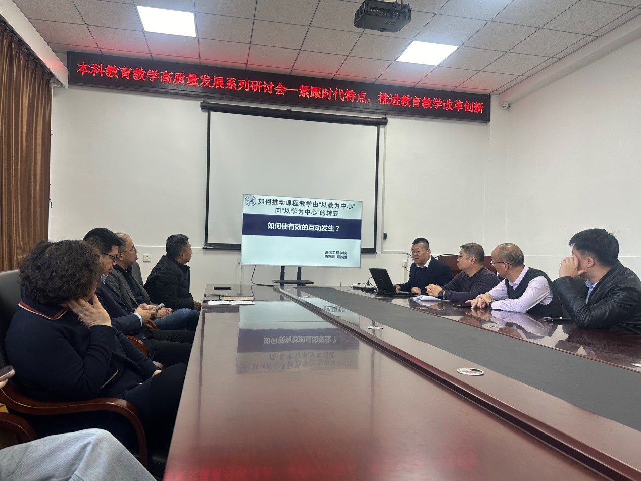 针对“如何推动课程教学由以教为中心向以学为中心的转变”这一主题,唐志国副教授向老师们介绍了如何与员工发生有效的互动,他从为什么要进行互动交流进行分析,强调老师的教学方法选择得当,借助现代信息技术加强互动,注重员工培养中的两性一度;并针对如何保证交流有效和主动学习的方法,与在场老师展开了深入而热烈的讨论。