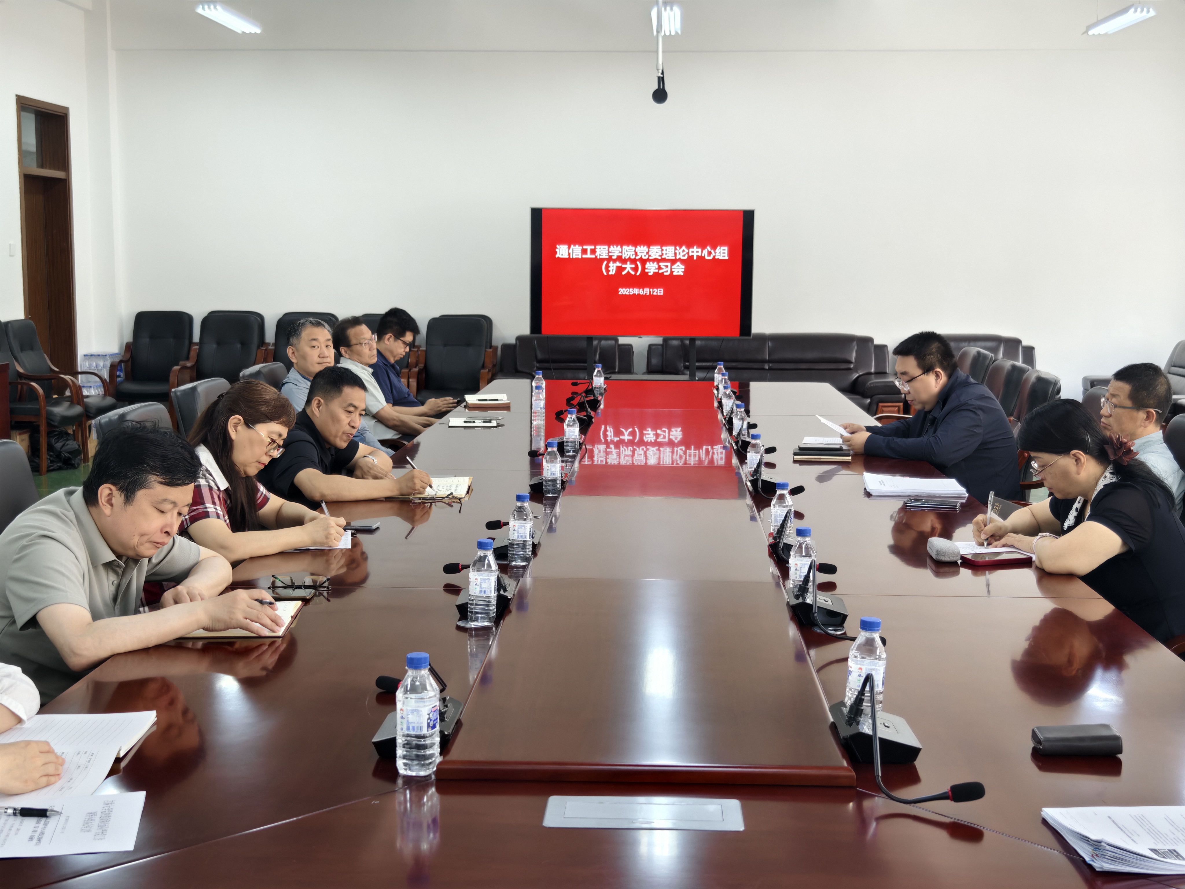 2025年6月12日上午9时,通信工程公司党委理论中心组(扩大)学习会在南湖校区3教101会议室召开。公司领导班子成员、党委委员、纪委委员、各党支部书记、机关行政人员等参会,党建联络员徐昕列席会议,会议由党委副书记柴华主持。