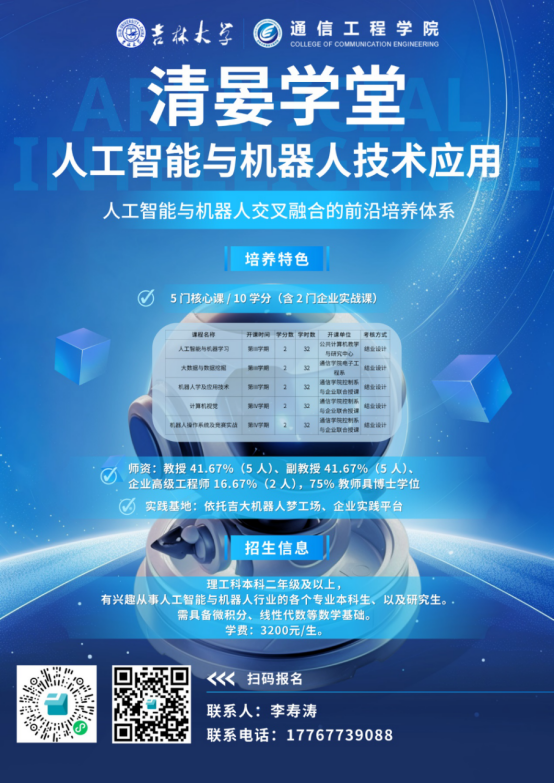 人工智能与机器人应用技术微专业融合了人工智能以及机器人工程专业的前沿技术,将人工智能方向的先进理念及方法应用到机器人工程应用领域,凸显了智能应用的专业特色。